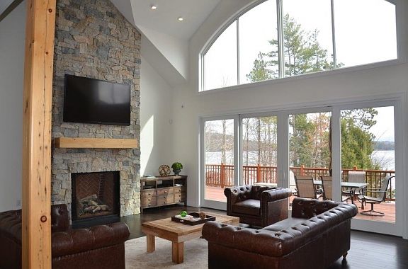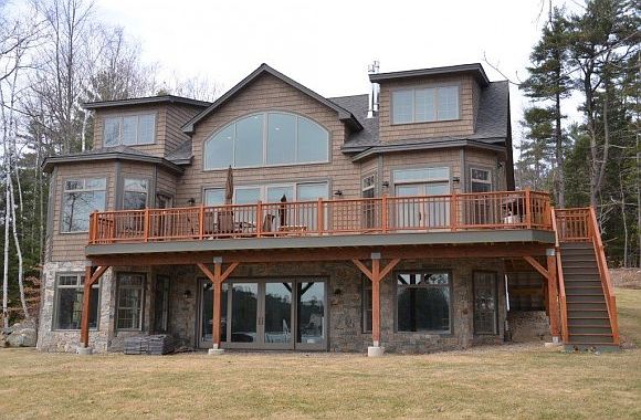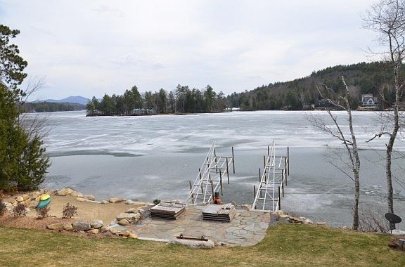 This wonderful Lake Home with a contemporary flair is nearly new. Step in, and you will be impressed with the lake and mountain views. The Great Room has towering ceilings and an impressive two story fireplace. The hardwood floors gleam. The kitchen is a cooks dream. The first level master bedroom is spacious and opens to the waterside deck. The second level has three bedrooms with a convenient second level laundry. The bonus room is huge and is the perfect playroom, recreation room or office. The lower level is in the process of being finished with family room with fireplace, recreation room with wet bar, bedroom, office and two additional baths. It leads to the waterside with a sandy beach and a U-shaped dock. What a beautiful Meredith home!
