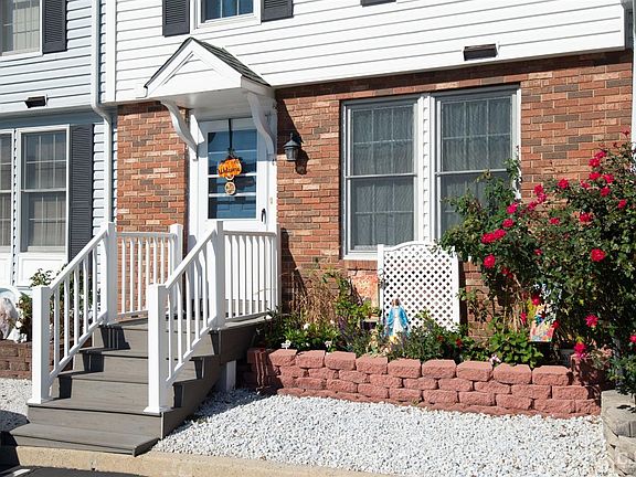 Welcome Home! Inviting and updated 2 bed 1 & 1/2 bath townhouse with a finished basement located in a quiet community. The eat in kitchen boasts new appliances with plenty of cabinets and ceramic tile flooring. Both bathrooms have been updated with top of the line fixtures, including bowl sinks and new vanities. In the full bath along with a jacuzzi tub you'll enjoy a pulse shower head with jets for your relaxation. Both bedrooms are spacious, have large closets with ceiling fans. The full finished basement is freshly painted, has Pergo flooring and a ceiling fan. Great for office or entertaining. New Pella windows, Heat, AC and HWH are less than 10 years old. Newer siding along with freshly painted treks deck was taken care of by the association for low maintenance. Perfect for commuters ,close to major roads , train bus, ferry and shopping. Come enjoy this quiet and quaint community, 2 assigned parking spaces, low HOA fees and taxes.