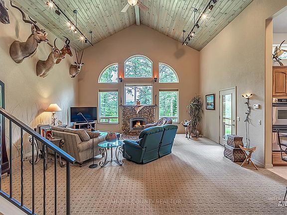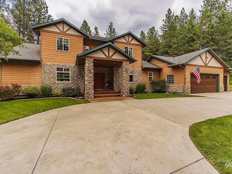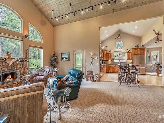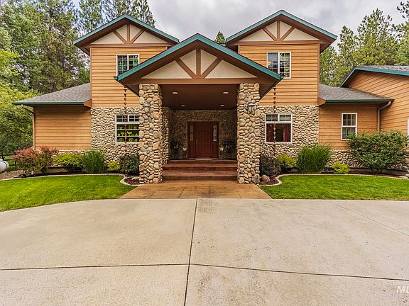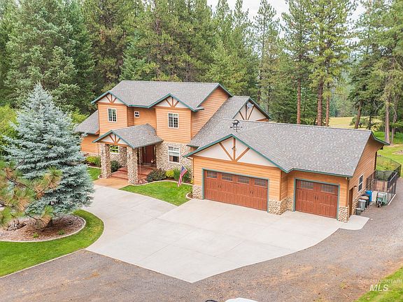 This secluded yet conveniently located property boasts an impressive 3300 sq. ft. custom home built in 2003, nestled on 11.76 acres of serene beauty, complete with pines, pasture, and a picturesque pond. Inside the thoughtfully designed floor plan offers three bedrooms and 2 1/2 baths with all living amenities on the main level. The master ensuite provides a spacious walk-in closet, a luxurious master bath complete with a soaker tub, dual head walk in shower and his/her vanities. The living room is a grand space with 19’ ceilings, beautiful view windows, and a cozy gas fireplace.The open concept kitchen is a chef's delight featuring hickory cabinets, high ceilings, a propane range, double wall ovens, a walk in pantry and a cozy separate eating area. Outdoor amenities include a 16gpm well, an automatic sprinkler system, and 12x12 outbuilding for storage. Entertain guests on the large covered patio while enjoying the tranquil water feature. This property provides everything you've been searching for in Idaho.