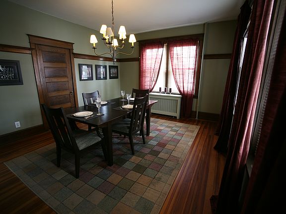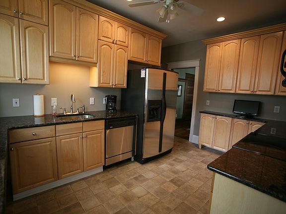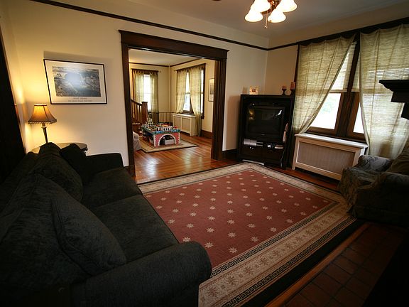 This property is available on a rent-to-own basis.This beautifully remodeled, 2,800SF home is a 70 year old American Four Square, with 5 BRs, and 2.5 BAs. Three stories of hard wood floors plus finished basement makes it 4 levels of living space! Professionally landscaped, double lot. Entire property is fenced in with 4' black aluminum fence in front with new 6' white privacy fence in backyard. The entire house has been remodeled inside and out over the last 10 years. New roofs on the main house, single car detached garage, and shed. New gutter system on main house that drains underground to the street. All three bldgs have aluminum siding and have been freshly painted tan. Main house has a concrete foundation with brick chimney and accents freshly painted gray. 28' x 10' front porch was completely upgraded with new support ceiling and floor beams, roof, gutter system, recessed lighting, new ceiling. Porch floor sanded down to original hardwood and sealed with polyurethane and waterproof sealer. Four wooden columns/railing freshly painted high gloss white. Great river view from front porch, 2nd and 3rd floors. New stamped concrete patio equipped with fire pit area in backyard. Great for barbequing and entertaining!Parking: 1 car detached garage, +4 car driveway parking, + 5 car street parkingAll new windows (39 total), new exterior doors, and new storm doors. Rewired the entire house with new electric, phone and cable wiring. New ceiling fans/lights in kitchen and living room and in 4 of the 5 BRs. Replaced all lights bulbs (110) with compact fluorescent lights.Finished basement includes 2 offices, fitness center, kids' playroom, half bath, and boiler/hot water heater room. Electric hot water heater. Oil fed boiler that provides steam radiator heat throughout the house. 550 gallon underground oil tank tested and insured against any potential leaking. Dual zone air conditioning with two separate AC units. 1st AC unit feeds basement and first floor. New 2nd AC condenser and fan feeds 2nd and 3rd floors.1st floor includes new kitchen with stainless steel appliances and granite counter tops. New full bath with 4.5' soaking tub and tile shower. 8.5 ft ceilings throughout 1st floor, 1 stained glass window on either side of fireplace in living room with wooden pocket doors separating the foyer. Large wrap around wooden staircase to 2nd floor with electric, handicap chair lift.2nd floor includes 4 BRs including Mstr BR. Master bath completely remodeled with new tile shower and 5' soaking tub.3rd floor includes 5th BR with separate sitting room, closet and large amount of attic storage space.Tenant is responsible for all utilities