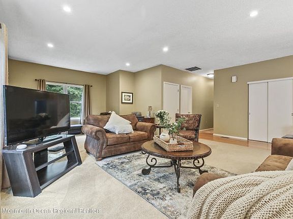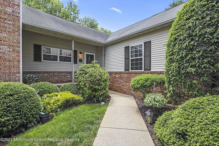 This End Unit ranch is a rare find in desirable Palmer Square in Holmdel. Home features 3 bedrooms and 3 full baths. Updated Kitchen with Quartz countertops. Generous size living room, With extra space perfect for a home office. Master bedroom has Vaulted ceilings, walk in closet and updated full bath. You will be amazed at the size of the finished basement with full bath. Use one side as an additional family room, While having a gameroom, gym or kids playroom on the other side. Possibilities are endless. Large laundry area with plenty of storage. Dining room has hardwood floors and sliders that lead to your large Trex deck and stairs to your lower level patio. Privacy abounds this wonderful unit backing to the woods. Close to Shopping NYC Transp. and Jersey Shore