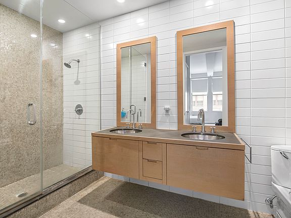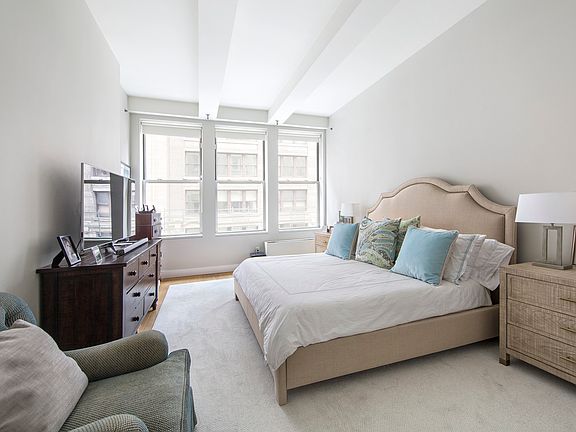 Virtual Tour Available - Video taken by outgoing tenant. This Condo will be delivered vacant. Loft-like proportions and contemporary elegance converge in this flex 3 bedroom, two-bathroom condominium in a prime Flatiron location. Fantastic light and views flood this 1,375-square-foot home where oversized windows, 11-foot-tall beamed ceilings and wide-plank Oak floors set a stylish tone. The open great room invites gracious entertaining or quiet relaxation thanks to its spacious proportions, custom built-ins and open kitchen. Chefs will delight in stainless steel Bosch appliances, ample custom cabinetry topped with honed lava stone, Bisazza tile backsplashes, and a convenient breakfast bar. This home's ideal split-bedroom layout places private quarters on opposite sides of the great room. In the serene master suite, you'll find plenty of room for a king-size bed and furniture, plus an enviable walk-in closet. The spa-like en suite master bath features handsome tilework, frameless glass shower, and a dual-sink floating vanity with fixtures by Kohler, Toto and Watermark. The second bedroom includes a sunny south-facing window and large closet, while the nicely-sized study features rows of closets making it perfectly suitable as a guest quarters or nursery if needs require. This second bedroom features a sliding glass door. A well-appointed second bathroom, entry closet and in-unit Bosch washer-dryer round out this home's functional and stylish appeal. 49 East 21st Street is a stately 1913 building converted to fine condominium residences in 2004. Residents of the boutique, pet-friendly building enjoy 24-hour doorman service and planted roof deck. Located at the intersection of the Flatiron District and Gramercy, with easy access to NoMad and Union Square, this home is at the center of coveted Manhattan living. Great nightlife destinations, magnificent shopping and Michelin-starred restaurants Eleven Madison Park, The Clocktower, Gramercy Tavern and Casa Mono line the nearby streets.