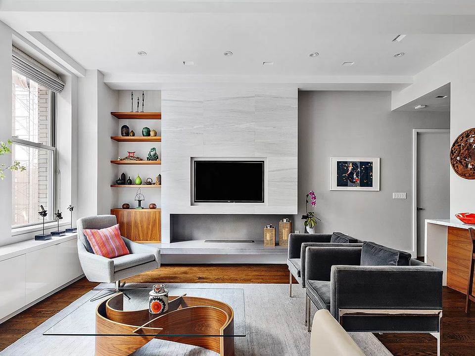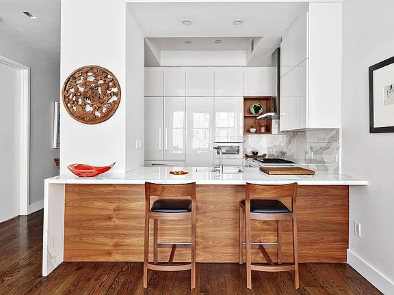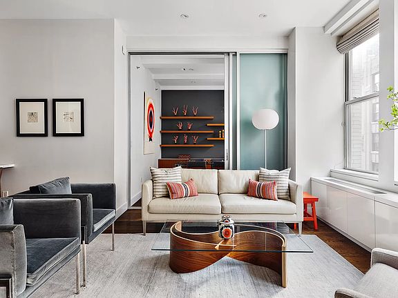 This pre-war boutique condominium conversion is perfectly situated on the border of Flatiron and Gramercy. Apartment 10A is a convertible 3 bed, 2 bath with southern exposure and abundant natural light, and 11' beamed ceilings. Renovated throughout with custom stained African oak flooring, custom millwork, recessed lighting including art lighting, and the exquisite, Akdo gray ash marble feature wall with TV enclosure and an EcoSmart vent-less ethanol fireplace. Additional custom-built black walnut cabinet and shelving in the living room and teak floating shelves and cabinets in the secondary room. The current layout is made for entertaining; the open kitchen and living room plan flows into the dining room, which can be made more intimate with the closed sliding doors. The renovated kitchen has Poggenpohl cabinets, Thermador appliances, Bosch hood, Miele speedoven and microwave, and high gloss Neolith quartz countertops, backsplash, and waterfall-bar extension. The black walnut continues into the paneling on the counter extension and shelf detail in the kitchen. The primary suite is bright and quiet; the City Windows have custom shades with blackouts. Donghia wallpaper as a feature wall. En-suite bathroom and second full bath have Sicis tiling, Watermark hardware, and Toto toilets. Residents enjoy a full-time doorman, a beautiful common roof terrace, extra-large private storage, and renovated halls. Minutes to Gramercy, Union Sq. & Madison Square Parks and all the best restaurants and shops. Numerous train and bus lines are right outside your door.
