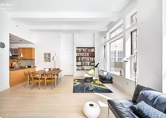 With alluring architectural dimensions and a bespoke Scandinavian aesthetic, this coveted loft-like designer home features approx. 1,375 sq. ft. and stunning oversized windows that flood the space in natural light. Offering soaring 12 ft. beamed ceilings, Apt. 2A includes two bedrooms, two baths, and a home office that can easily be converted into a third bedroom. Additional features of this radiant space include wide plank light oak wood flooring, creamy white walls, natural wood accents, and southern exposures from the east, west, and south. Upon entering, an elegant entrance gallery leads to a 40 ft. great room offering an open kitchen, living, and dining area. The chef's kitchen boasts stainless steel appliances, oak veneer cabinetry, stone countertops, and a glass mosaic tile backsplash. The open living and dining area boast a wall of windows with picturesque views of the New York City architecture, serving as a perfect backdrop for the minimalist, pin-drop quiet space. The master bedroom comfortably fits a king-sized bed and boasts an ensuite master bath with a spacious rain shower, dual floating vanity, beautiful glass tile, and a Toto toilet. The second bedroom includes a closet and comfortably fits a queen-sized bed. The home office, which can easily be converted into a third bedroom, also offers ample space for a queen-sized bed. A second full-sized bathroom is adjacent to the home office and includes a soaking tub, glass tile, floating vanity, and a Toto toilet. Additional features of this stunning space include a new A/C system, new Bosch washer/dryer, and separate building storage that conveys with the unit. Located in a loft-like boutique condo building, 49 East 21st Street is a pet-friendly building that allows pied-a-terres and features a full-time doorman, superintendent, newly renovated hallways, and roof deck. Ideally located in the coveted Flatiron District, this residence is in close proximity to Madison Square Park, several convenient transportation options, and the best restaurants, shopping, and entertainment the city has to offer.