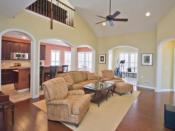 Remarkable Home!!! The Williamsborough model with added sun room is one of the most prestigious homes in Equestra on the east side, professionally landscaped lot with a paver front entrance walkway,stone and cedar shake front elevation,tree lined backyard. The inside boasts professionally trimmed arched top entrances, custom window treatments, gas fireplace, large screen TV entertainment section. The kitchen has upgraded granite and hazelnut rope cabinets, SS appliances, in kitchen desk, butler's pantry that leads to the dining room, 4 stool breakfast bar, and B/nook. The dining/master bedrooms both have tray ceilings. The library has 1/2 wall wainscot paneling with glass paned doubled french doors.