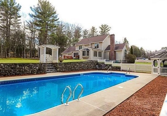 This Beautiful 3 bedroom 2.5 bath Colonial, sits on an awesome 1.3 acres. Perfect for entertaining, this flat back yard has a gorgeous pool with gazebo and deck that leads into a spacious sunroom as well as the kitchen. The open eat in kitchen has granite counter tops and stainless appliances. A separate dining space also abuts the kitchen. Glass French doors attach the sunroom to the family room and a Bright Formal Living Room with brick fireplace! Upstairs is a Master Bedroom with full bathroom, and 2 more bedrooms with another full bath in the hall. All this and an attached 2 car garage with plenty of paved driveway.