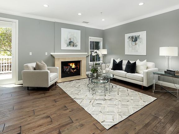 Tucked-away privacy yet convenience to myriad restaurants, Caltrain, and Hillsdale Shopping, this detached single-family home is located toward the rear of the community, surrounded by foliage views. Extensive remodeling begins with solid hickory wood floors, floor-to-ceiling wraparound windows & French doors highlight the living/dining room, filling it with natural light and providing access to backyard for fresh-air living. Remodeled kitchen features white cabinetry topped in Calacatta marble-style quartz; large peninsula counter with breakfast/wine bar, stainless steel appliances including a Cafe gas range with 6 burners. Primary suite has a walk-in closet with custom organizers, sleek & modern ensuite bath with dual vanity, circular plunge tub, large shower with pebble stone floor. Other features include central A/C, inside laundry, attached 2-car garage with high-speed Tesla charger. Excellent Belmont schools (Central, Ralston &. Carlmont - buyer to verify).