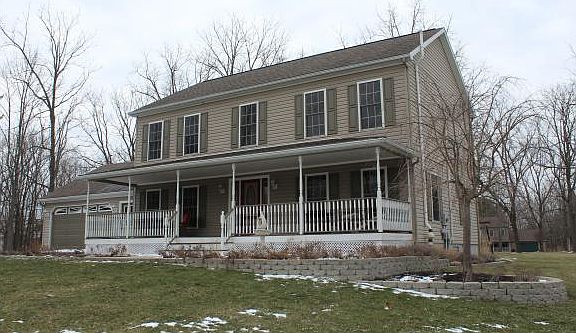 Impeccable Trumansburg Village 2100 sq foot, 2003 built home on 1.3 beautifully landscaped acres. Bonus outbuilding with heat & electric perfect for home biz or accessory apartment. Spend summer evenings rocking on the full front porch or lounge lazily on the back deck. Formal entry, living room with plush carpet & wall mounted modern fireplace. An eat-in-kitchen this is boast worthy. Formal dining room is great for holidays. First floor half bath with laundry. 4 bedrooms on the second floor with 2 full baths. The full basement ready for finishing!