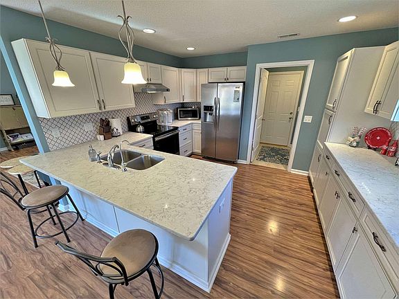 Enjoy a fresh start with this charming newly built home near the lake. Built in 2017 and offering extremely low maintenance living...allowing you more time on the lake. Open concept design with vaulted living area brings a sense of openness. Fully appointed kitchen with stainless appliances and beautiful quartz countertops...tons of cabinet & counter space, breakfast bar and separate dining area. Spacious living room with lots of natural light, cozy space with a corner gas fireplace. Laminate wood flooring throughout kitchen, dining, and living room area. Vaulted master bedroom suite along with two additional guest bedrooms and bath. Peaceful backyard screened porch with adjacent patio area. Nice 2 car attached garage with full concrete driveway. Very short walking distance to boat access pier and tennis court. Low traffic neighborhood great for walking, biking, and socializing.