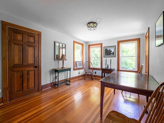 Lovely antique village colonial with nice private yard in historic Mudville section of downtown. Lots of country charm inside, with natural wood and stain, right down to the hand cut roof rafters. Large private yard with natural borders outside, with small stream abutting side of property. Upgrades include windows, gas stove, DW, refrigerator, roof, back deck and gas fired heating stove in living room. Easy to maintain and heat, short walk to downtown shops and cafes. Full attic with flooring for extra storage. Just a minute to access rail trail, and short drive to swimming, fishing, and picnicking at Lake Winthrop. Great award winning schools a bonus.