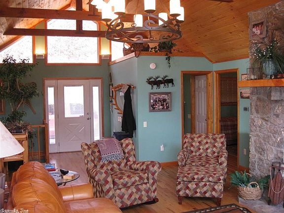 LAKEFRONT RETREAT. Privacy w/great lake views & 469 ft of usable beach. 6 BR,4 BA,3024 sf home is spacious enough for all family & friends. Excellent floor plan.Entry level has 2 BR, 2 BA, wood floors,great room w/stone wood burning fireplace rising to the top of vaulted wood ceiling,dining area,kitchen & deck. 4 BR,2BA,family Rm w/wood burning fireplace, morning kitchen, laundry room, & access to covered porch. Propane run generator starts automatically if necessary. Boat launch close by. 1 Yr HMS HW