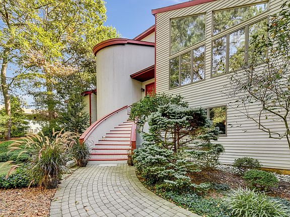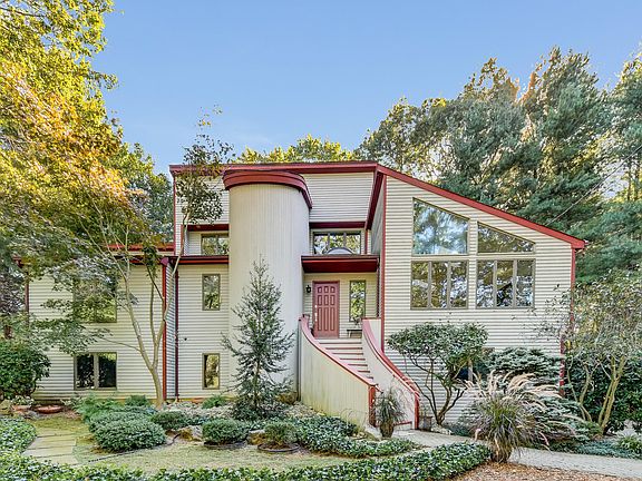 Unique and dramatic custom contemporary designed 4 bedroom, 3 bath home. Open floor plan. Cathedral ceilings. Lots of natural light. Beautiful hardwood floors on main level in living room and dining room. Kitchen and hall foyer have ceramic tile floors. Sky lights throughout. Kitchen with granite counters, ceramic tile floor and mosaic tile back splash. Master suite with cathedral ceilings and separate dressing area. Master bath with double sinks and jacuzzi tub. The lower level has a large family room/library with built-in bookcases, walk-in closet with custom storage and a full bathroom. It is a multi-faceted space that can easily be used as another private living space. High quality features throughout the house and garden.