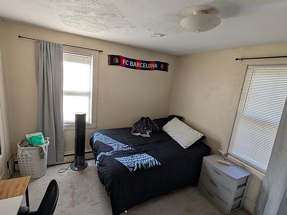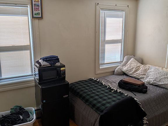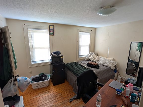 Located close to the UMass campus, this townhouse is one of three units in the house. It features hardwood floors, a large shared front and back porch, and off-street parking. Rent includes heat, but tenants are responsible for hot water, which is electric. The kitchen has new cabinets. First month's rent, last month's rent, and security deposit due upon acceptance. 1/2 month's agency fee applies to applications. This unit is NOT furnished. Located within walking distance to UMass campus, this townhouse is 1 of 3 units in the house.