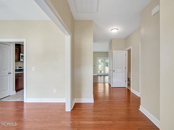 Don't miss out on the opportunity to own your own piece of paradise in the peaceful community of Rocky Point! This charming residence in the Knolls at Turkey Creek provides a tranquil escape from the city's hustle and bustle while remaining conveniently close to Downtown Wilmington, Wrightsville Beach, and Hampstead. Step into the inviting Willow floor plan, offering over 2,200 square feet of living space. With 3 bedrooms, 2.5 baths, a bonus room, and a screened porch, this home is designed for comfort and versatility. Tucked away on a premium cul-de-sac lot, it is enveloped by lush woods, ensuring complete privacy. As you enter through a gracious foyer, you'll find a well-appointed kitchen with stainless steel appliances, abundant counter space, and ample cabinets. This culinary space seamlessly connects to the main living room, bathed in natural light and offering a view of the covered rear porch. For those special occasions or cozy meals, the formal dining room is perfect. The master bedroom, conveniently located on the first floor, boasts an ensuite bathroom, extra storage, and a spacious walk-in closet. Upstairs, two additional bedrooms and ample attic space for storage await. The bonus room can flexibly serve as a den, home office, or even a playroom! Nature enthusiasts will be captivated by this property, featuring an expansive wooded lot that backs up to Turkey Creek and a nearby pond, ideal for fishing. Plus, a neighborhood boat ramp for kayaking adventures. This home is move-in ready, with fresh paint and all appliances included. Low HOA fees sweeten the deal! Take the opportunity to make this serene retreat your new home.