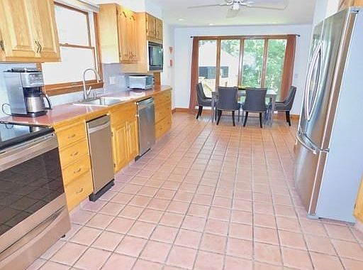 - Kit Dscrp: Main Level, Dining Area, Flooring - Stone/Ceramic Tile, Closet/Cabinets - Custom Built, Stainless Steel Appliances, Recessed Lighting, Window(s) - Bay/Bow/Box, Exterior Access