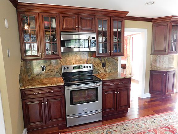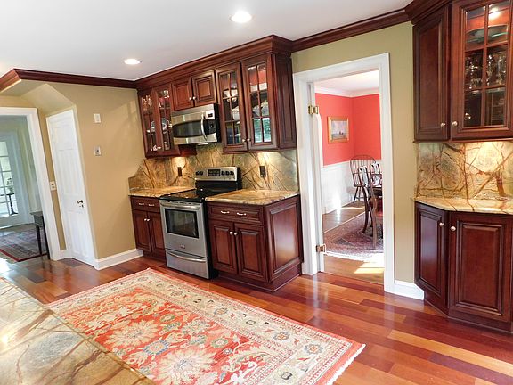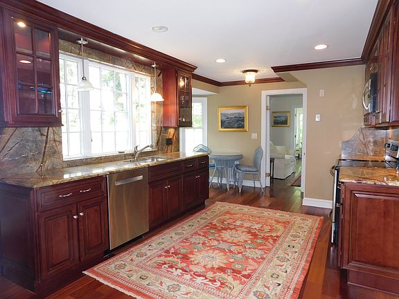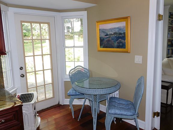 Lovely updated charming colonial in the heart of Easton. New kitchen has cherry cabinetry & granite counter tops. Stainless appliances. Living room has a fireplace, built-in bookshelves and an arched doorway. Formal dining room has built-in corner hutch & arched doorway. Newer white & glass sun porch room (26' x 9') has central air and a marble base gas fireplace along with french doors. First floor den/office. First floor laundry room with front loaders. Hardwood floors throughout. Breezeway entryway mudroom has garage access. Master Bedroom has dressing room area & walk-in closet. Both bathrooms have been updated with pedastal sinks, tile & marble. Two nice sized bedrooms. Large walk-in attic with loads of storage. Wrought iron fenced in patio & salt water lap pool (30' x 6'). Fenced in yard with patio and seating area. The home has central air in the sun room only, but it does cool off much of the first floor. Three fireplaces. Mint condition! Subject to probate, already in progress.