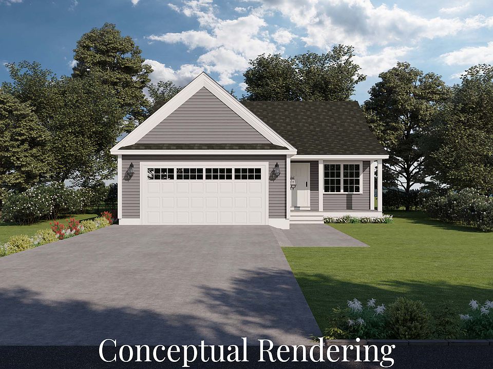 This 2 bed, 2 bath ranch style home plan boasts richly appointed spaces including a functional entryway space that flows into a luminous, open concept living, dining, and kitchen area. The bright & airy kitchen showcases a 5' island, granite or quartz counters, and GE stainless steel appliances. A spectacular master suite with walk-in closet and private bath with tiled master shower, a spacious 2nd bedroom, mudroom and full guest bath complete the home. Some of the amazing amenities include central A/C, 2 car attached garage, and front yard irrigation. Not to mention you are sure to appreciate this low maintenance living with landscaping & plowing done for you! Nestled just a 6-minute drive to Route 101 and nearby shopping, restaurants, and the popular Brickyard Square. Homeowners get the best of both worlds with the convenience of in-town living and the charm of a peaceful New England setting.... Where Community is Home.