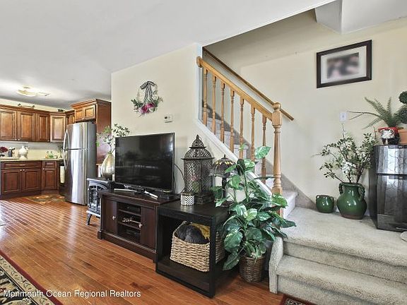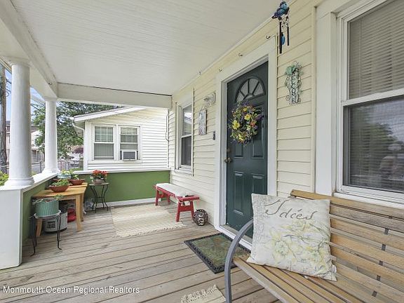 Charming 3 bedroom 1.5 bath home in Keansburg. Home features a lovely front covered porch to enjoy those warm summer days or sipping coffee in the early morning hours. Open floor plan on the first level. Home features beautiful Hardwood floors on the first level. Eat in Kitchen has Cherry cabinets Granite countertops and Stainless appliances with large pantry. Laundry room and half bath are also on the lower level. The addition for the second level includes a Generous size master bedroom with 2 closets. Large second bedroom. Third bedroom is great for a nursery or an office. Lush backyard with beautiful plants and patio for Summer gatherings. Yard also has two sheds. Don't miss out on the sweet Affordable home. Close to NYC transportation and Jersey shore beaches.