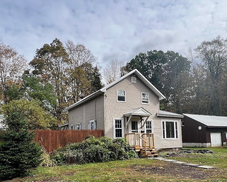 Fall is here and so is this wonderful house for sale.  Located on a dead end road in the Village of Pulaski and across the street from the famous Salmon River, you will find 49 Forest Drive. This 2 story, 3BR, 1BA old style home boasts a brand new kitchen with stainless steel appliances.  Enter this home through the spacious mudroom that is big enough for all of your shoes and coats.  New flooring and LED lighting through out and updated bathroom with new tub/shower and vanity.  The upstairs bedrooms both have plenty of built in storage space.  There is an exterior entrance to the dry basement with tall ceilings.  The 3 car detached garage has space for a workshop.  This property is wonderful for outdoor entertaining.  Walking distance to the village amenities but without the feeling of being in the hustle and bustle of village living.
