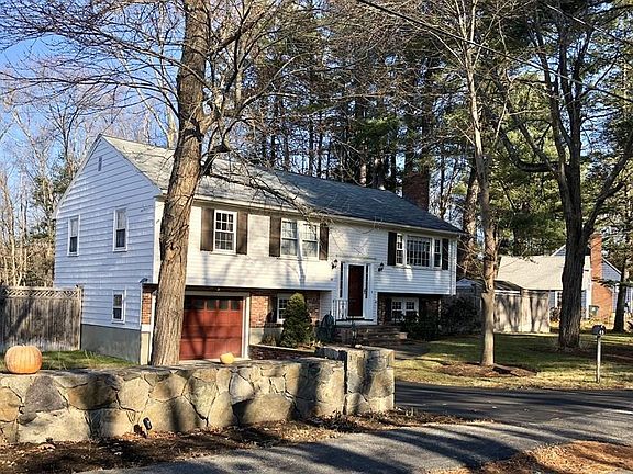 You will be"Head over heals in LOVE with this HOME" this beautifully maintained 3 bedroom, 3 Bath,1 car gar, 2 fireplace Split Entry Home has so much to offer the new owner. Walking into this home you find the updated kitchen featuring white cabinets w/ granite counters w/ island, open to the sun filled dining room w/hardwood floors, which is adjacent to the living room w/ a cozy fire place. Walk out onto the deck overlooking the private professional landscaped yard with Koi fish pond & gunite pool area, w/extensive brick and stone work. First floor main bathroom has jet tub with multiple spray tiled shower. Master bedroom has ½ bath. Main floor hardwood floors in all bedrooms, living room & dining room. Entertain your guests in the sunny family room w/ Brick Fireplace, wet bar, built in cabinets, & full bathroom. Easy walk out to backyard. Walking distance to town Center,easy access to RT 93,95 & Commuter Rail.New Heating System 10/17, new oil tank, irrigation system w/private wel