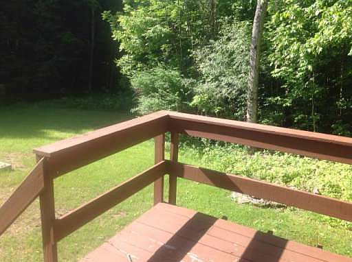 Great neighborhood; last house on dead end street; Very scenic and safe with decorative waterfalls. Wooded trails on two sides, can walk to YMCA. Living room sliding door leads to back yard deck; full porch added 8 years ago, as well as new roof. Private well but community sewer...best of both worlds...no money down possibility 08/02/16