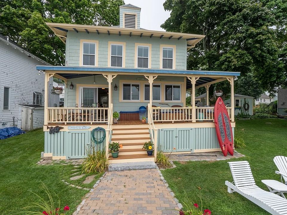 Waterfront Living at it's Finest! Stunning Antique Colonial on a double sized lot with 130ft. of Water Frontage! Wanna go Kayaking, Swimming, Fishing, or Take your Boat out for a Cruise? Sit and relax on the Wrap around covered Porch enjoying views of Worlds End and the Passing Boaters. The 1 car Garage Provides a spacious work space. This Home was completely Renovated in 2010 From the "Studs" In with new Electric/Plumbing, New Roof with Full Spray Insulation in all exterior Walls, Attic and Crawl Space Below. Walk into your Warm Inviting Foyer with an open floor plan that flows seamlessly from the Living Room/Dining Room To the Beautiful Window Lined Kitchen that offers Water Views from every angle! Upstairs you will find 3 Sun filled bedrooms with Classic Exposed Wood Beam Ceilings and Gorgeous Water Views from the Master and adjacent front facing Bedroom. The Upstairs Tiled Bathroom Boasts a Double Granite Vanity with Convenient 2nd floor Laundry. An Absolute Pleasure to Show!