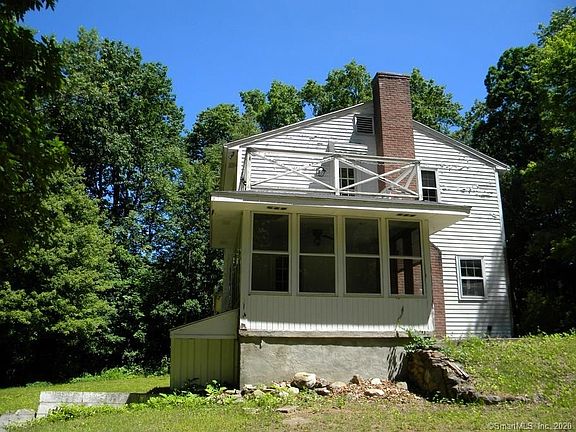 This Fannie Mae colonial has expansion possibilities and even in-law potential. The main level features a large bright Great room with brick fireplace and hardwood floors and access to the Sunroom,Dining rm and eat in kitchen, and half bath with laundry,. The second level has 4 generous sized bedrooms, all with hardwood flooring, and full bath. The master bedroom opens to a balcony over the sunroom. The lower level walkout is finished with chimney flue for woodstove. There is also a good sized breezeway between garage and main house that could be finished. The yard is private and lightly wooded with stone walls.With some repairs and updates this is a great value for this price and location.
