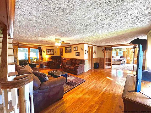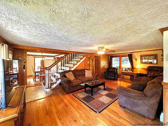 Looking for a well maintained home a stones throw away from Highland Lake? Look no further! This home offers no shortage of living space, both indoor and outdoor. The main level features an open living concept with an expansive living room, formal dining area and kitchen. Off the living area is a private family room presently purposed as a first floor bedroom that has its own bathroom and a sizable walk in closet. The upstairs boasts a master bedroom with his and hers walk in closets, 2 additional bedrooms and a renovated shared bathroom. A large Florida room in the rear of the home opens up to a sizable private decking area with plenty of outdoor entertaining space and provides access to an above the ground pool and fenced in yard perfect for your four legged friends. A large barn in need of TLC offers a blank canvas to be repurposed to whatever your hearts content or as continued storage use. In addition to the homes attached 2 car garage, there are two large carports perfect for storing all your toys out of the elements. Ductless mini splits add to this homes practicality! Close to all the best Sullivan County has to offer including but not limited to the Eldred Preserve, Bethel Woods Center for the Arts, Resorts World Catskills, Monticello Motor Club and many quaint river hamlets along the Delaware like Barryville and Narrowsburg. Home is being sold "AS IS". All information presented deemed accurate but not guaranteed.