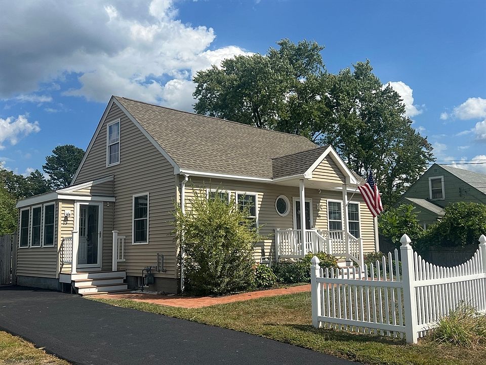 Cute 3-bedroom, 1-bath Cape style home near the Wilbraham line. This move-in ready home features a fenced yard, newer roof, updated boiler, central air, replacement windows, vinyl siding, hot water tank, refinished hardwood floors, and a brand-new driveway. The updated kitchen with breakfast bar opens to the dining room and features an open stairway that fills the space with natural light. French doors lead to the deck for seamless indoor-outdoor entertaining. A first-floor bedroom/office sits near the full bath, with two more bedrooms upstairs. The partially finished basement offers bonus space.