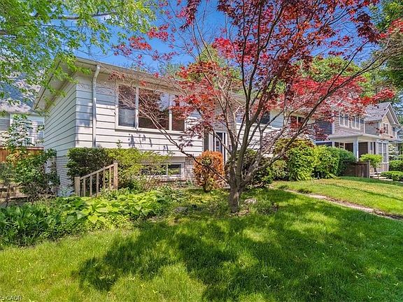 Welcome to this charming home nestled among tall trees, situated in one of Oakville's most desirable locations just a block away from quaint Kerr Village with it's array of unique shops and restaurants, and a short stroll across the Sixteen Mile Creek bridge to historic Old Oakville and Harbourfront! The property is right across the street from the award-winning Westwood Park and a sunset view of the park could be beautiful potentially, with new windows in the Living Room facing west. Built in 1972, the existing layout features spacious main-floor living with a spacious Kitchen with walk-out, a south-facing, open-concept Living Room and Dining Room, plus 3 Bedrooms and a 4-pc Bathroom on the upper level. The lower level is bright with it's large, eye-level windows, and includes a Recreation Room with fireplace, a 2nd Kitchen area (needs appliances) with bright, above ground windows, Laundry/Utility Room, plus an inside entry to the built-in Garage. Enjoy the wide, mature corner lot with 80.34' across the front, in this prime location surrounded by custom-built homes. This property is being sold as is, waiting for your vision to reimagine it into something extraordinary.