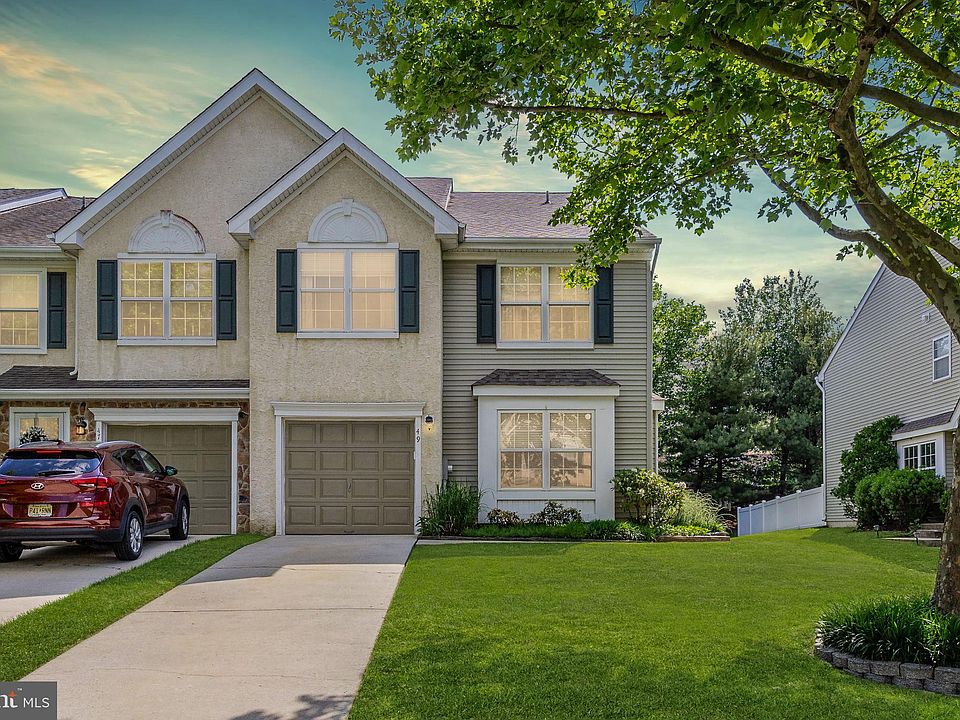 Welcome to 49 Hearthstone! This Outstanding End Unit Townhome featuring 3 Bedrooms, 2.5 Baths, 1 Car Attached Garage is located in one of Evesham’s premiere Townhome communities (Hearthstone). Upon entering you will see how loved and maintained this wonderful new place to call home is. For those that love to entertain the living room & dining room are perfectly situated to do just that. The Family Room has a soaring 2 story ceiling w/gas fireplace filling the room with an abundance of light. The beautiful upgraded bright kitchen features white cabinets, new granite countertops, a peninsula w/overhang and all stainless steel appliances. Completing the 1st level is the powder room and inside access to your garage. The 2nd level is equally as impressive!! The Primary Bedroom features spacious walk-in closets w/organizers, a master bathroom with a soaking tub & separate shower, plus double sink vanity. The hall bathroom is equally as impressive. There are 2 additional nicely sized bedrooms on this level as well as a convenient laundry room (washer and dryer included). Head on out through the sliding glass doors off the kitchen to take some time out and relax on your patio and peaceful backyard. Additional upgrades for peace of mind include a newer roof (5yrs young) & newer hot water (2yrs young). The location is fantastic !! Evesham offers an array shopping opportunities, casual/fine dining establishments, and easy access to major roadways. Lastly, don’t forget the highly regarded Evesham Township school district.