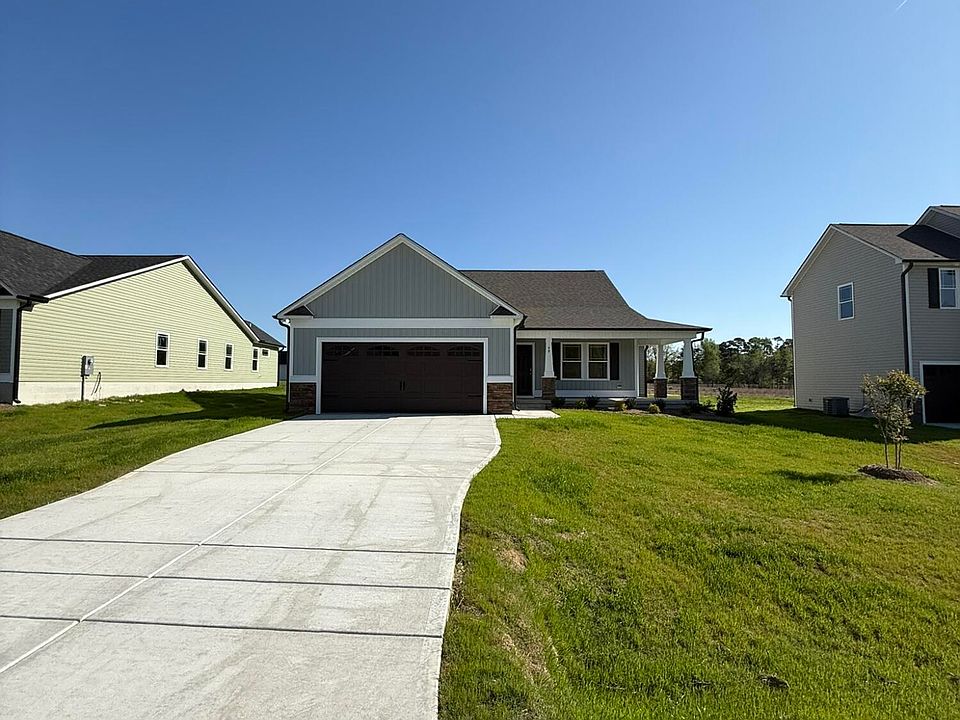 Beautiful open ranch plan in new Scotties Ridge subdivision! This plan features a cozy family room with fireplace. Spacious kitchen that features granite countertops, stainless steel appliances, tile backsplash, eating nook and FRIDGE. Owner's suite with trey ceiling, dual vanity, soaking tub, sep shower and WIC. Two additional bedrooms share a full bath. Covered patio in back! See agent remarks for more info!