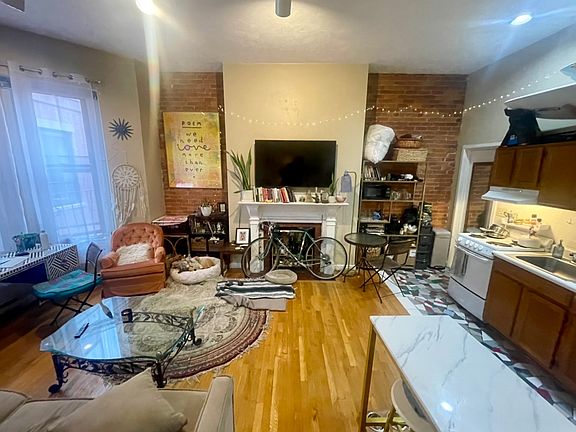 Back bay/Hereford St/One Bedroom: 2nd floor rear unit between Newbury St and Comm Ave. Hardwood floors, Exposed Brick, Fireplace (ornament). Steps to MBTA Green Line and #1 Bus. to Harvard Squ and Boston Medical Center. Heat & Hot Water are Electric paid by the tenant. Required First & Last Months Rent, 1/2 Security and Broker's Fee