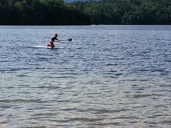Cozy and clean chalet with beach rights to two beachs along with a tennis court as well. Very family friendly community for kakkaking, fishing, sailboarding along with small boat access. This spring fed pond is restricted to a 10-hp motor. Large open porch with table, chairs and a good size gas grill for cooking. Easy walking to the beach from the house. The main floor is a equipped kitchen (stove, frig and microwave and eating and cooking utensils. Comfy living room with large flat tv. Sunroom all along the front of the chalet with a small tv along with table and chairs for breakfast and meals. Two bedrooms on the main floor - One with a queen and the other with two twins. Full bath off kitchen. Stairs off kitchen down to basement with washer/dryer. There is a loft upstairs with a queen bed along with two twins. The twins are up against the eves so great for small children. This unit has a portable air conditioner with exhaust for hot days. A small pet needs to be ok with the owners. Rent is $1400./wk. plus NH Rooms and Meals tax of $119. There is a cleaning fee of $150. and a damage deposit of $350. which is refundable if there is no damage. Open July 30th to Aug. 6th Aug. 6 to August 13th Aug. 20th to Sept. 30th Call Sheila Holland Rentals Plus RE for any questions or bookings. All utilities are paid for by the owner for this vacation rental. Now only available for weeks in August and September.