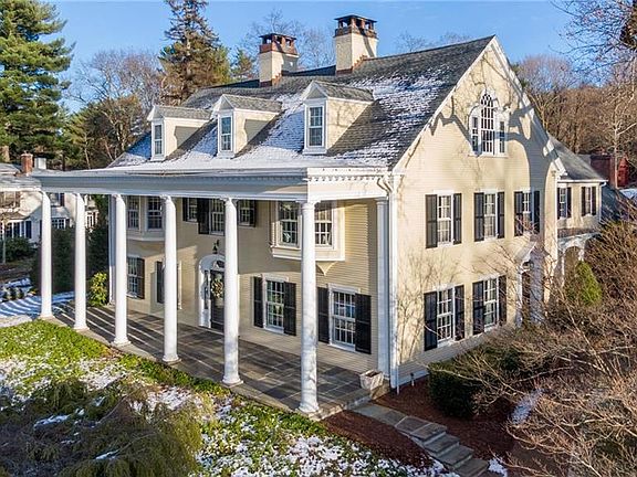 Greek Revival Village Icon - Christened Daybreak, this 1858 estate was reimagined in the 1920s, during the height of architectural brilliance. A stunning testament to the rigors of classic design and detail, buttressed by fine bones, such craftmanship is rarely duplicated today. Sunshine streams through massive, leaded glass windows, filling stately rooms and accenting meticulous molding and dramatic fireplaces. The architectural pedigree of the living room is unequivocal, and grand, with a massive hearth and sophisticated features. The dining room is a master class in elegance and utility. Sweeping views through huge bay windows, an arched inlaid mantle over a commanding fireplace and tall ceilings framed by intricate molding, it is the family gathering place. Through, the butlers pantry, the kitchen beckons with thoughtful selections of wood and stone and opens to a sitting area and a walk-in pantry. Ringed with warm, polished mahogany bookshelves, the library features a hearth and bay windows. Hallmarks of the substantial Master Bedroom Suite are sweeping bay windows, a gorgeous spa bath and a dressing room. The bountiful array of second floor bedrooms with generous light. Highlighting the third floor are two beautiful spaces with a bath. Outside the landscaped grounds circle the perimeter, with differing topography including a full flat sports lawn, a sunken garden, and multiple formal gardens and patios. Imagine adding your imprint to this historic treasure. This unique property is located in the Historic Village of Farmington, lined with sidewalks and top schools, just two hours from Boston and NYC, minutes to shopping, highways and medical facilities. Fabulous location for all lifestyles.