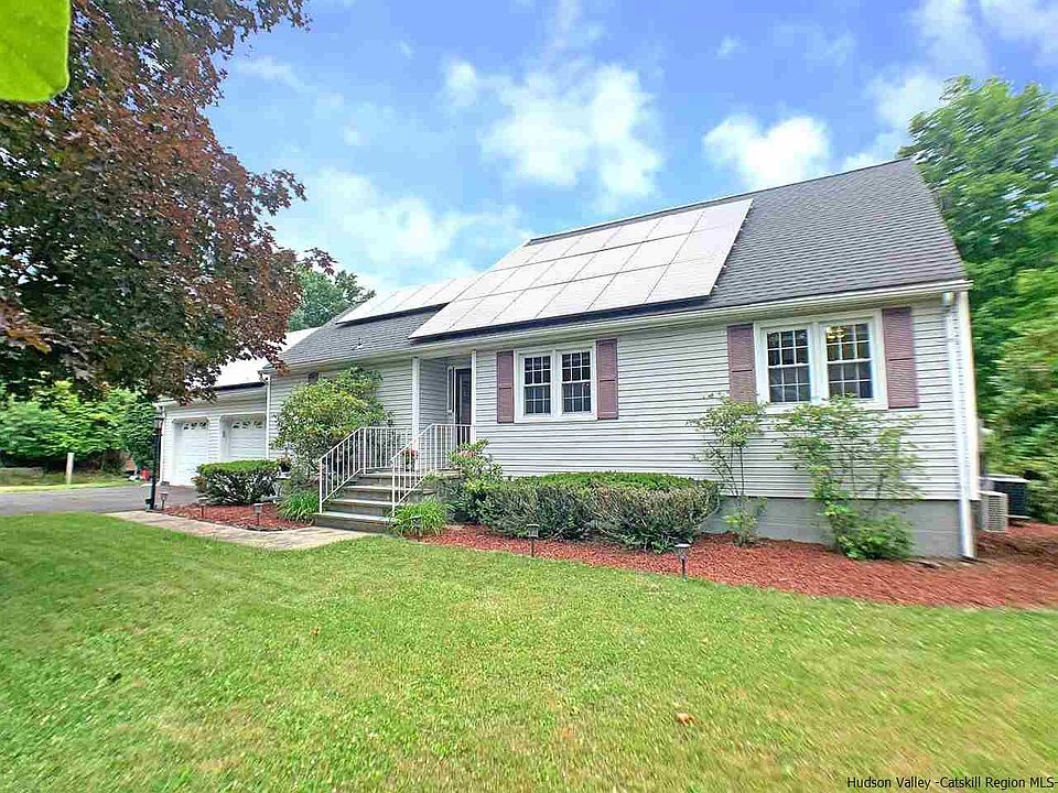 OPEN HOUSE - SUNDAY 07/10/22. NOON TO 2:00 PM. Think “immaculate, walk-in and relax!" Minutes to Uptown Kingston and close to everything the Catskills has to offer! This oversize lot is almost half an acre and provides room for private functions, relaxing in the hot tub, lawn games, and a huge raised deck/patio for BBQ-ing right off the kitchen. Inside there’s a circular flow with gleaming hardwood floors throughout the first level. The eat-in-kitchen is large and updated with over-the-sink views of the most amazing maple tree on the block. Walk right out back for your morning coffee in a cozy covered porch or invite the neighbors to the 30' x 20' deck/patio. A large LR with bay windows overlooks more mature trees, and flows to a DR and Den that lead right back to the foyer and kitchen -- easy first floor flow. There are 4 bedrooms, with the primary bedroom and a full bath on the first floor. Upstairs are 3 more nice sized bedrooms and another full bath. Light pours in from every window and the road has a very small-town-country feel. There's a 2-car garage, and the home has newer solar panels ($30K in 2015) for 4-season ease and low electric bills ($49.00 every two months!!). If that wasn’t enough, there’s a full-finished basement with a great wood burning fireplace and space, space, space to spread out in your rec room. It provides for a massive at-home office or work space (w/ a separate entrance). And, exercise while you wait for things to tumble dry in the separate laundry area. Newer windows, on-demand hot water heater, full B-dry basement system, newer garage door, 3 new heating/AC splits w/ upstairs central A/C, and a hot tub. You'll find attic storage in 3rd bedroom closet and over garage too. A pleasure to see and show. Enjoy!