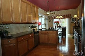 Custom ranch in highly desirable Hutchings Farm Subdivision. Right off Hwy K, minutes from Hwy 70 and 40. Home has been completely upgraded with beautiful hardwood and ceramic floors on the main level. Kitchen features custom cabinets and granite counter tops. Enjoy bar-b-ques on the deck off the breakfast room. Relax in the spacious master bedroom with 10x12 master bath. Tub and separate shower, double sinks, you will think you are at the spa. Main level has breakfast room and a formal dining room that features a tray ceiling and chair rail. More living space in the lower level for either bedrooms or office and or rec room. Full bath. Walk out to the patio and enjoy the outdoors. Home is warm and inviting. You will enjoy all the extra living space. Location is awesome, close to highways and great restaurants and shopping.