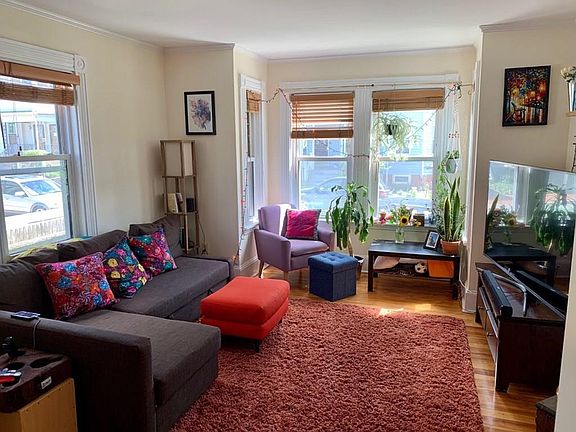 Fabulous location and dog friendly apartment offers first-floor living in Agassiz neighorhood, near everything. The sunny livingroom is surrounded by windows on two sides and flows into a dining room for easy entertaining. Walk ahead to 2 bedrooms of equal size. Older kitchen is large enough for small eat-in breakfast table. Kitchen boasts gas range and a slider to a private deck with a step-down to a private patio for grilling. Deck is surrounded by a small lush landscaped garden, which is watered by an in-house sprinkler system. It's a perfect Zen refuge. Dedicated laundry for this unit is in the basement, which also offers storage opportunities. Parking on street is easy. Landlord is PET FRIENDLY. Will accept cats or dogs of any size, except pit bull or pit bull mixes (insurance).Unit is near Raymond or Danehy Parks. Also near MBTA, Porter and Harvard Sq. Easy access to commuter rail, MBTA, buses, and highway. Unit will be professionally covid cleaned. Painted within last two years.