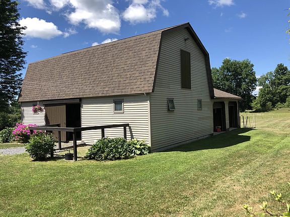2 bedroom, 1 1/2 bath home on 6.73 acres. This is a horse property. 24' x 36' 4 stall barn, with a 24' x 24' addition that contains a 12' x 24' loafing area and 2 -12'x12' bays, fenced pastures, area for 60' x 120' riding ring and place for 50' round pen. (just need fencing for those 2 as the owners no longer have horses and got rid of the fencing in those areas. Frost Free Water Hydrant in Barn and a 1 hole waterer just outside the barn. House~ Kitchen with lots of Merillat brand, cherry cabinets, tile counters, gas stove, refrigerator and dishwasher, plus space for a table. LR, w/ woodstove and slider to the back deck. Enter the mudroom (w/closet & laundry area) from the covered side porch. Lovely Front porch. 1/2 bath down, 2 BR's & full bath up. Beautiful setting. Mature plantings!
