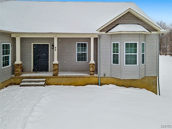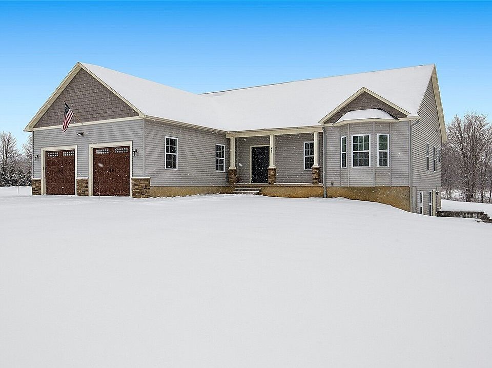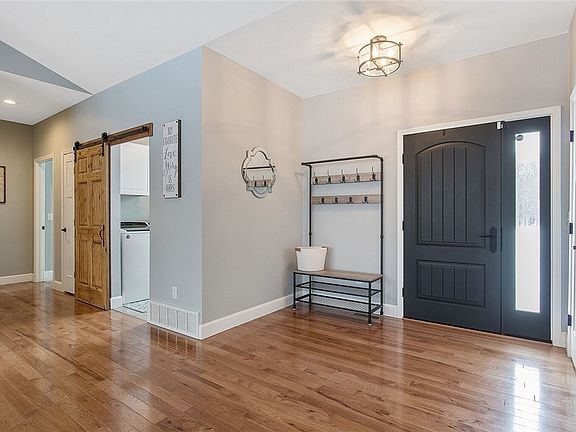 This remarkable custom built ranch has an open floor plan concept with vaulted ceilings & gorgeous HW floors. Flooded with natural light throughout, this 5 bedroom, 3 bath home is so desirable! Stunning kitchen with 2 toned cabinets, quartz countertops, SS appliances, double ovens & wine chiller. Living area has floor to ceiling stone gas fireplace. Private primary Bedroom w/ ample closet space & pretty primary bath complete with custom stone/tile walk in shower. You will want to wash & fold in the private 1st floor laundry room w/ sliding barn door! Impressive Finished walk out basement with plush carpeting, 5th bedroom, full bath, family room with gas fireplace & an incredible Movie theatre room complete with surround sound, a wet bar & extra sound proofing insulation. (Chairs do NOT convey). Attached 2 car garage with a 2400 Sq ft detached heated pole barn! Complete with Water & internet. Fit 6 or more cars in your double wide paved driveway. (Stone drive in front of pole barn). ALL this and more on 3 acres that back up to the State ATV trails. Super dry basement as the owner built to the hugest standards! ***Highest & Best Deadline Sat 3/4 by 6 pm**