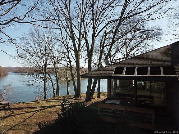 Waterfront on the CT River! Endless River Views will take your breath away. Sits high and dry above the river so no flood ins. required. Wall of Windows Capture the 180 degree views from every spot in the main living space which is an entirely open concept! Floor to ceiling brick fireplace, sliders open onto a wrap-around covered deck where you will enjoy watching the river flow by! Passive Solar! Contemporary Split Level features a master bedroom with his and hers bathrooms, walk-in closet. Additional bedrooms down with large windows looking out over the yard and river. Priced Below towns assessed value and way below appraisal reflects the work the house needs to make this gem shine!