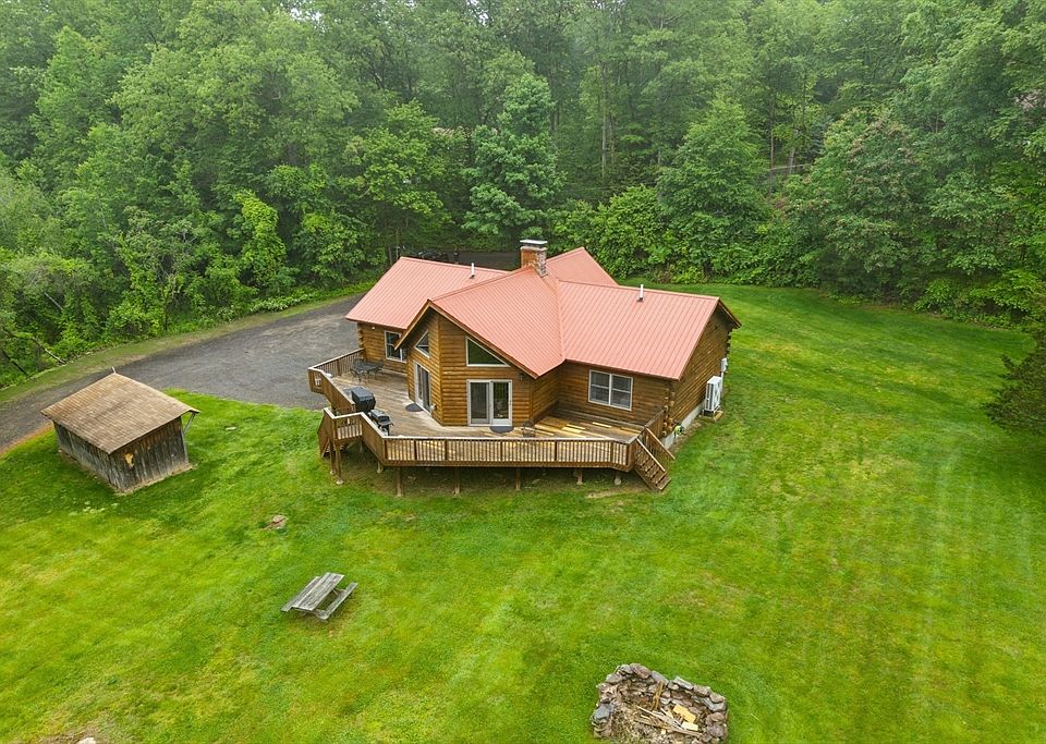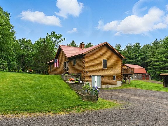 Country Living at its Very Best is found in this Modern and Exceptionally Maintained Log Cabin Ranch which will be your Rustic Retreat! Imagine being surrounded by nature, nestled on1.42 Acres with a place for all your toys in the 3 Bay Garage w/loft & Barn, plus new heat pump w/a-c, mostly hardwood flrs, hw tank 2024. Be minutes from Congamond Lake, trails, shopping & dining! Not your typical log cabin, many of the walls have been sheet-rocked/dry wall & painted offering today's style w/an open, sun filled layout with hardwood floors and updated kitchen boasting granite counters, stainless appliances and plenty of cabinet space. Continue through to a cozy living room with a wood burning stove, and vaulted ceiling creating a warm and inviting space for everyday living or entertaining. The main floor also offers a master suite with full bath and walk in, as well as 2 additional beds and full bath. Enjoy the outside on the oversized deck in a peaceful and scenic setting! A Rare Find!
