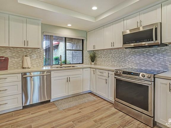 Back on the Market, because Buyer Could Not Get Loan! So, now is your chance to grab this beauty! Truly the nicest offering currently at Chaparral C.C. Remodeled to perfection,this stunning home features coveted south-facing double fairway, lake and mountain views. With soft grey wall paint and tile floors throughout, this home exudes a cool zen vibe that offers peace and relaxation. The living spaces throughout are open and inviting. The kitchen features slick white cabinetry with brushed nickel hardware, quartz counter tops, mosaic tile back splash, stainless appliances and pendent lighting. The bathrooms feel like you are at a luxury spa with large walk-in showers with beautiful mosaic tile and quartz counter tops. The third bedroom is currently setup up as a TV media room and features contemporary barn-like glass doors. Offered turnkey furnished, all you have to do is bring your clothes, your golf clubs & tennis rackets to enjoy!