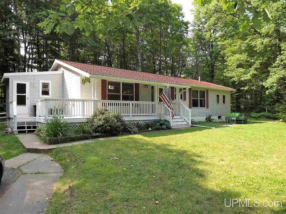 Located on a private half acre lot in Negaunee Township this 3 bedroom 2.5 bath home is priced to sell! The open concept 1 level floor plan makes entertaining a breeze. Nice size kitchen with breakfast bar, plenty of cupboard and counter space. Sliding glass doors lead to the large deck & huge yard with gazebo. Updated roof, gutters, and furnace. Add on master suite with walk-in closet and master bath. Well maintained and clean. All it needs is a new owner!