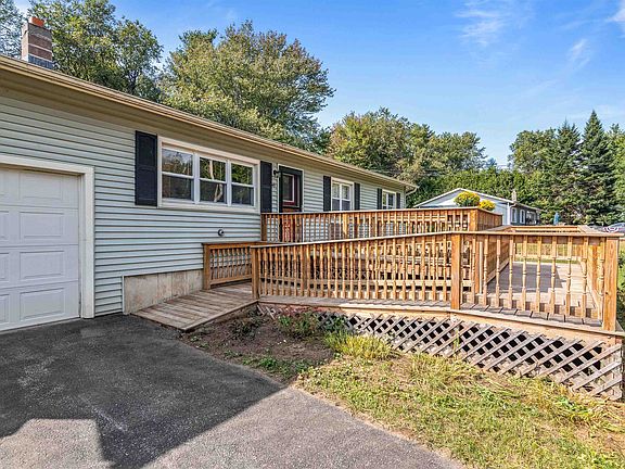 Welcome to this well maintained 2 bedroom ranch in a peaceful neighborhood in Milton. This freshly painted home is ready for one level living and accessibility with ramps on the front and back decks, and also includes additional living space in the partially finished basement. Enter the home into the open living room with a large window overlooking the front yard, bringing in natural light. The living room leads back to a separate sunny dining space and a well equipped kitchen. Down the hall you will find 2 bedrooms and 2 full bathrooms, one complete with a convenient laundry room. Steps lead down to the basement, where you’ll find bonus living space ready for your finishing touches! Numerous upgrades including a new roof in 2022, a bathroom remodel in 2020, additional garage storage, and a utility storage space in the basement that connects to the garage bulkhead access. The large back wooden deck leads to a backyard with plenty of room for recreation or relaxation around the fire pit. Come see this move-in-ready home today!