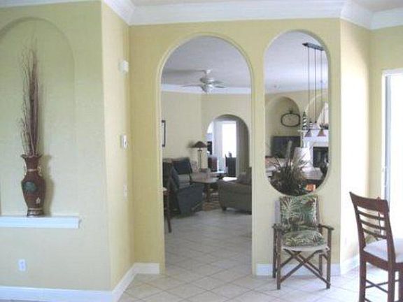 Golf course views front/back. Salt water Gunite pool/water feature w/access to shower/bath. Coastal Green sensor for A/C & water heaters. Fresh paint inside/out. 30 yr roof. Ceramic tile thru living area, scraped hardwd in master. Arched doorways, heavy trim, built ins. Island w Corian counters & Dbl oven. Fireplace. Office/Study. Designer block driveway. Oversized 3 car garage. Sprinkler system