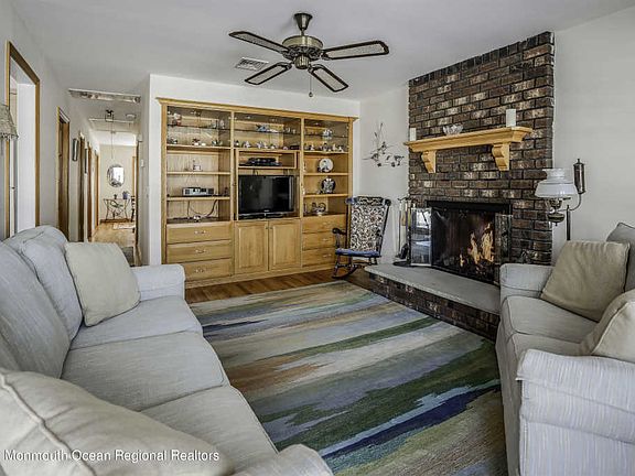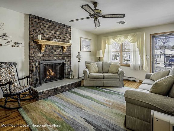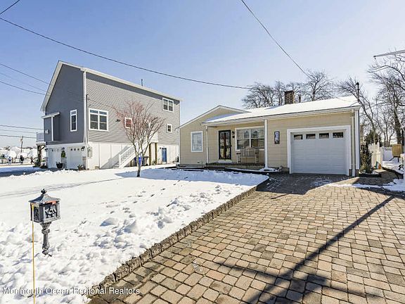 This beautiful ranch is located in the Baywood section of Brick. It's approximately 200ft from the marina and has water views of the basin. The home is currently set up as a 2 bedroom home but was originally a 3 bedroom (now the 3rd bedroom is an office/den). The home has a ton of natural light and offers wood floors, gas fireplace, solid wood doors, built-ins, Corian kitchen countertops and a laundry room. The oversized garage measures 33 x13. Outside you will find a paver driveway, cedar impression siding and a fenced-in yard.