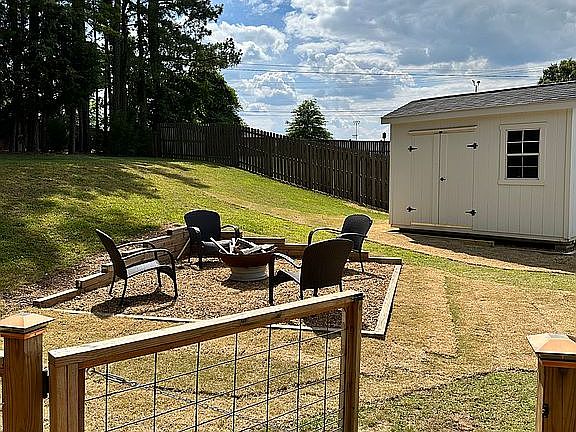 Charming three-bedroom, two-bath home in Brookleigh subdivision, close to shopping, grocery, a park, etc. This home boasts a custom built master closet, furnished interior option, also all furnished appliances covered back porch with a fire pit area, shed, and an extra-wide driveway. The property features a custom landscape and drainage system around property with a fence, along with a small wading stock tank pool. Whether fully furnished or not, we're flexible and ready to work with your buyer's agent. Your dream home awaits!