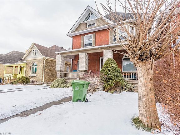 Large Family Home with potential to create up to three units with R3 zoning. Currently set up as a 4 bedrooms, 4 bathroom home (laundry room on 2nd floor could be 5th bedroom if needed). Solid brick home with four floors of finished space - check out the 360º virtual tour and floor plans! Detached 1.5 car garage with hydro & heat plus storage loft. Ample parking in the private drive - three car comfortably without blocking each other or up to 7! Could convert into a duplex or triplex with second storey rear door (needs platform and stairs) or entry to basement that has been closed (easy to reopen). PLUS 40 solar panels on 20yr contract (about 7 yrs in) that earn approx. $129/month. So many possibilities with this 2.5 storey brick home in the southwest of St. Thomas. Check out the virtual tour, floor plans, and extra photos then book a showing (in person and virtual available).