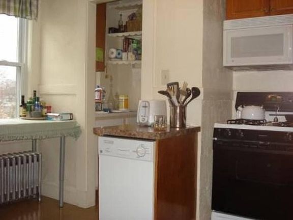 Quincy/Merrymount area. Large One Bedroom Apt., Four Room Apartment in a beautiful residential neighborhood that is a 15 min. walk to Quincy Ctr. Red Line T station and a 5 min. walk to Wollaston Beach. The apartment features an updated, eat-in kitchen (gas stove, fridge) as well as an updated bathroom. The apartment also features newly renovated hardwood floors, lots of closet space and all new windows. The 4-family property has a small yard, coin-op laundry in basement, off-street parking, and extra storage in the basement. Heat & Hot water utilities are included in the rental price. An annual lease is required and No Pets or Smokers! 12 Months